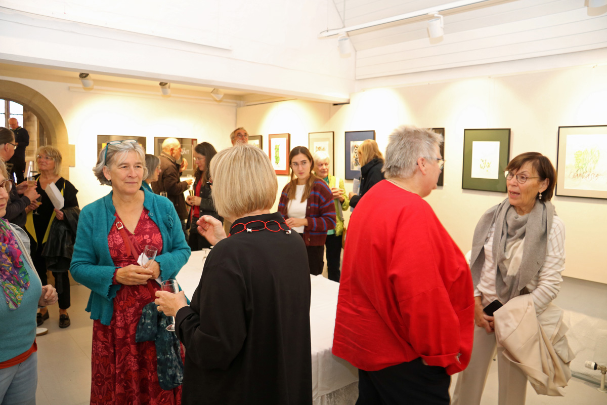 Die zahlreich erschienenen Kunstinteressierten, darunter auch viele neue Gäste, sorgten an diesem Sonntagmorgen wieder für ein volles Haus. Nach der ebenso fachkundigen wie unterhaltsamen Einführung in die Ausstellung durch Prof. Dr. Helge Bathelt hatten die Besucher ausgiebig Gelegenheit zu Gesprächen mit der Künstlerin aus Bietigheim-Bissingen.